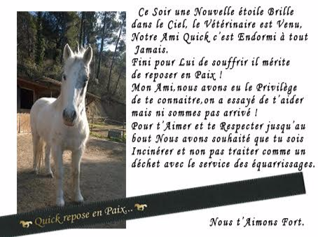 Ce gentil cheval a passé 1 ans et quelques mois à nos côtés, nous avons tout fait pour le retaper car il souffre de divers pathologie qui créer un disfonctionnement sur tout son arriére Main.