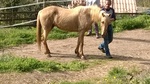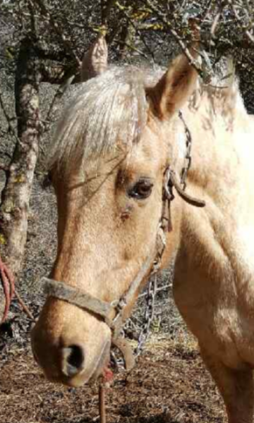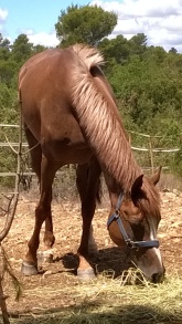 Cette Jument vivait à l'attache depuis quelques mois avec un minimum de nourriture et d'eau car son ancien propriétaire avait divers chevaux et un jour il a décider de sans séparer et comme Palina
