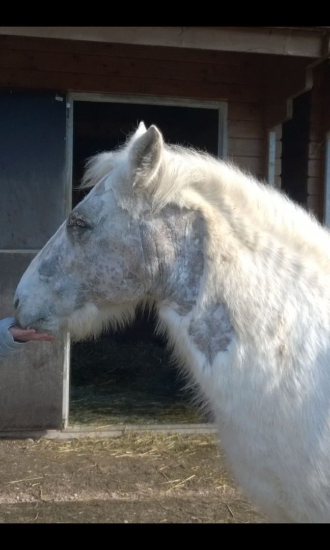 Ce gentil Poney ne cesseras jamais comme Moi de Vous remercier car sans votre Aide Rien n'aurait était possible! Si aujourd'hui il vas mieux il faut savoir que tout n'est pas gagner car il a un lourd Traitement et il auras divers Visite des Vétos au Refuge: Il faudra retirer ces points et examiner son Œil ainsi que contrôler l'évacuation de son pu et par la suite il faudra le redescendre au centre d'Imagerie afin de vérifier que tout est bien rétabli sinon il faudra faire de nouveaux Examen. Voila je vous mets ci joints des photos de Cette Joli Bouille qui c'est bien Battu et qui a était très Patient. Un super Poney. Merci à tout les Vétérinaires de la Clinique de l'Hippodrome Côte d'Azur et au Centre d'Imagerie pour l'excellent travail qu'ils ont fait et pour l'Attention et la réaction qu'ils ont porter à ce Dossier pas facile. Une Super Equipe Merci Beaucoup.