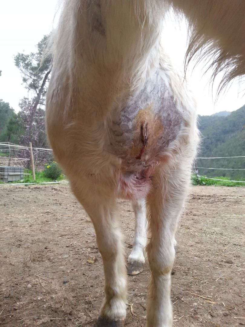 Depuis son arrivée au refuge, Quick a été volontaire et très sage sur tous les points. Nous devions laisser passer les 13 jours de traitement et informer les vétérinaires de l'évolution, ce qui a été fait. Le 18/02/2016 le vétérinaire est venu à notre demande car nous trouvions qu'il n'y avait de nette amélioration. D'après lui il semble effectivement que le traitement ne soit pas très évolutif. La cicatrisation se passe bien mais il semble que les congestions multiples de sa tête sont encore présentes et une masse au dessus des arses est apparue. Suite à tout cela, la décision prise est de ramener Quick à la clinique mardi 23/02/16 pour faire une ponction de cette nouvelle masse et des examens permettant de voir l'évolution interne de son phlegmon. Pauvre petit poney qui se bat pour avoir le droit de vivre et de guérir, nous sommes tous avec toi dans ce combat et mettrons tout en oeuvre pour y arriver. Nous souhaitons nous excuser de ne pas donner plus souvent de nouvelles, mais sachez que les 24 protégés du refuge ont besoin de nous pour veillez à leur bien-être et à leur entretient. Merci de votre compréhension , et toute aide est la bienvenue ! Nous vous tiendrons informés mardi des rèsulats des examens qui auront été effectués et des traitements qu'il faudra lui apporter.