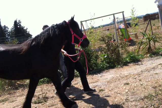 Elle est manipuler, a était scéllé et monter 2 fois en main et a même était adoptée il y a quelque mois, mais c'est conditions de Vie n'était pas respecter ( Perte de poids plus qu'importante, et parc jamais entretenu) Nous ne pouvions la laisser ainsi...