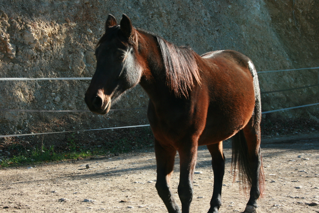 Alors si vous souhaitez l'aider sachez que cette Demoiselle surnommée Petit Ours Brun ne peut plus faire de randonnées et qu'il faudra la respecter, car l'Humain a créé un léger handicap sur son arrière main qui l'empêche définitivement de pratiquer toutes activités hormis de la compagnie et du débroussaillage.