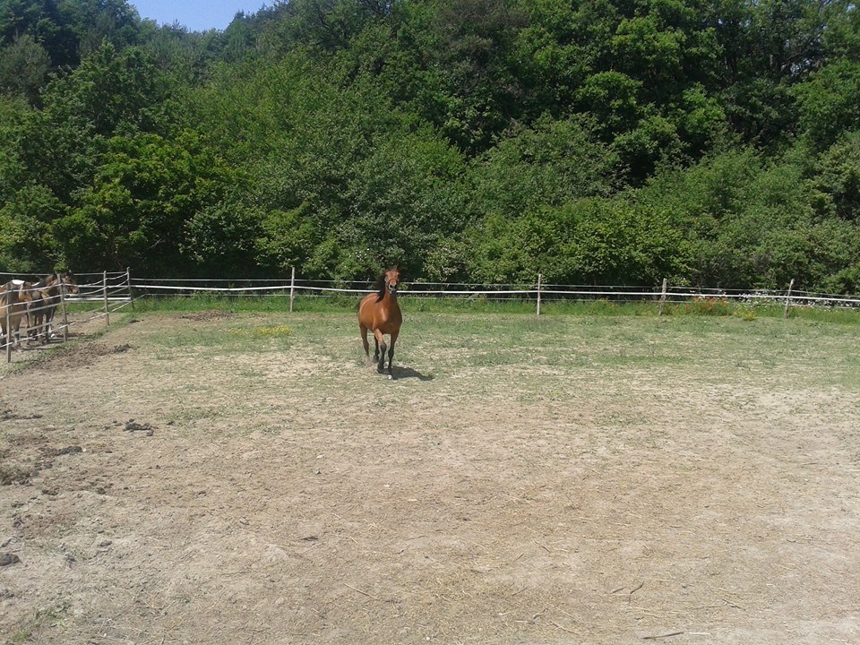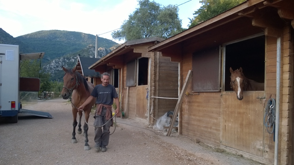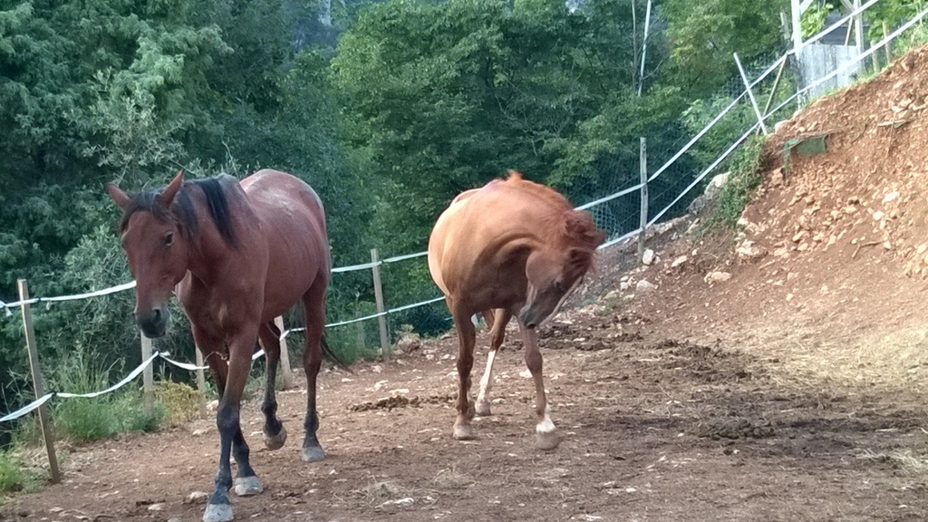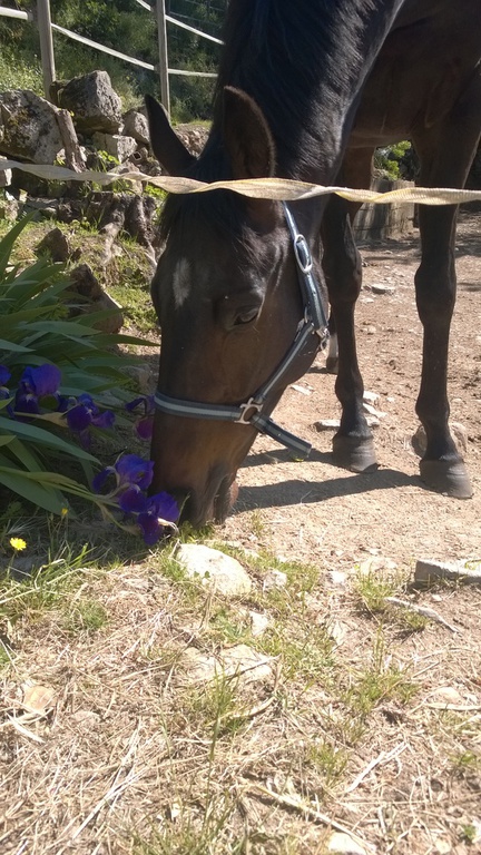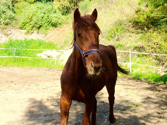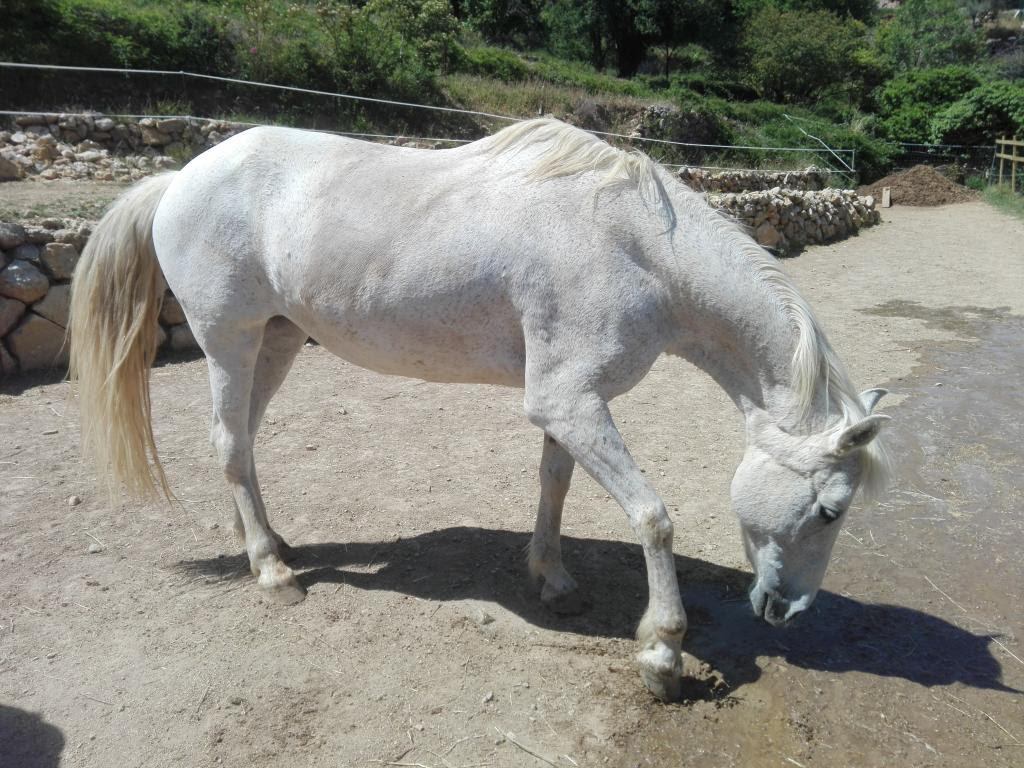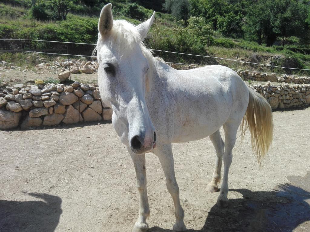 Cette Jument OI Quater croisée Arabe agée de 13 ans a été rachetée à sa Propriétaire pour Lui éviter le Marchand de Chevaux et par la Même,empêcher son Copain Médi de partir au Couteau.