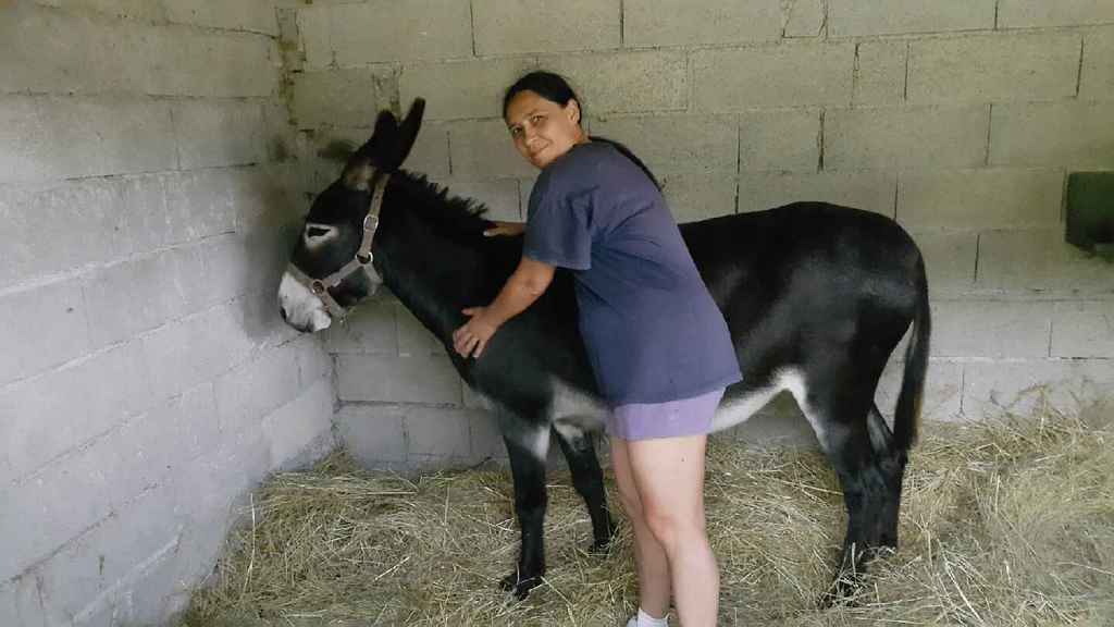 Cette jolie petite ânesse qui attend un Baby cherche une bonne famille d'adoption.